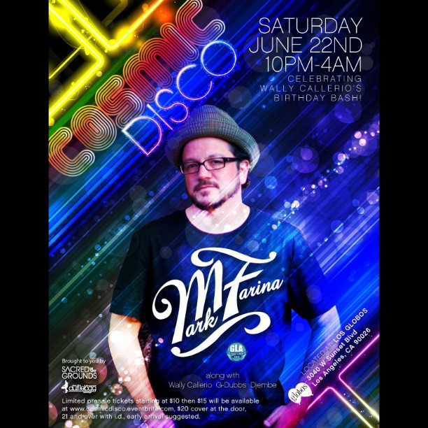 For more info about Mark Farina @ Cosmic Disco 06/22/2013: